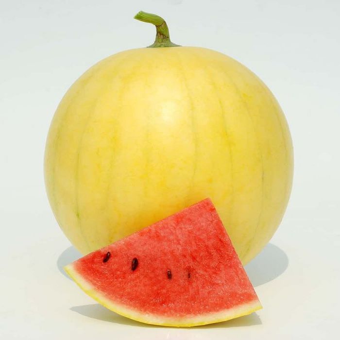 Потрясающий, супер раннеспелый гибрид, для теплиц и открытого грунта, с красной сладкой мякотью и жёлтой корой. Растение компактное, плод округлый, янтарно-желтый, без полос, массой до 6 кг.  Мякоть ярко-красного цвета, плотная, сахаристая, хрустящая, очень сладкая. Гибрид отличается высокой толерантностью к ложной и настоящей мучнистой росе.
