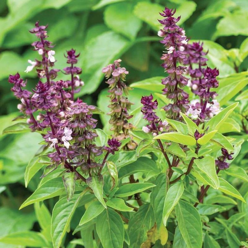 Этот уникальный сорт базилика является отличной альтернативой привычным популярным видам. Необычность и оригинальность сорта заключается не только в его исключительной декоративности, но и в том, что он сохраняет свои отличные потребительские качества на протяжении всего периода вегетации – во время цветения не только листья не теряют свой изысканный аромат и вкус, но и оригинальные шпилеобразные цветоносы также пригодны для использования. Растение отлично чувствует себя при выращивании в домашних условиях, на балконе, лоджии или в патио. Период от всходов до хозяйственной пригодности 55-60 дней. Кустик компактной правильной формы, сильноветвящийся, стебли крепкие и прочные, зеленые листья образуют очень плотную, почти шарообразную крону высотой 25 см и диаметром 20 см, над которой возвышаются элегантные шпили цветоносов с цветками лавандовой окраски. При обеспечении достаточного количества тепла и освещенности, сорт подходит для круглогодичного выращивания. Сорт относится к типу Тайских базиликов и имеет очень изысканный аромат с тонкими анисовыми нотками, в качестве специи незаменим для блюд восточной, азиатской и средиземноморской кухни. Пряный запах базилика отпугивает различных вредителей, таким образом, он одновременно будет служить защитой для других растений, выращиваемых по соседству. Культура обладает иммуноукрепляющими и антибактерицидными свойствами, которые обусловлены присутствием в составе эфирного масла, фитонцидов и витаминов С, РР, А, группы В.