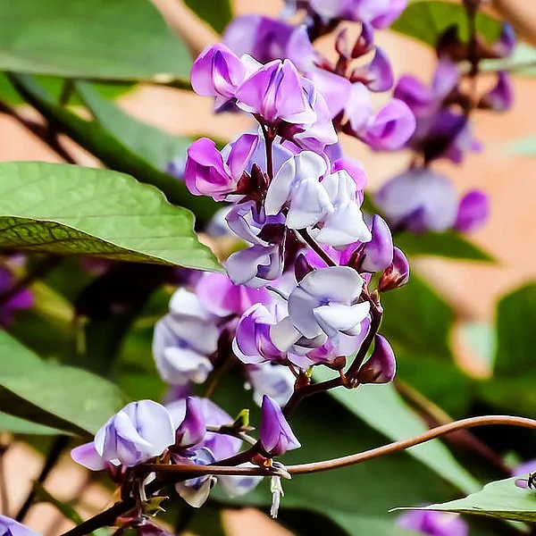 Великолепное, яркое, контрастное растение! Вьющийся однолетник достигает высоты 250 см. На фоне сочной зеленой листвы, бело-пурпурные цветы и темно-бордовые плоды. Цветы собраны в кистевидное соцветие длиной до 40 см, обладают слабым ароматом. Цветет в июле-сентябре. Используют для вертикального озеленения, растению необходима опора.