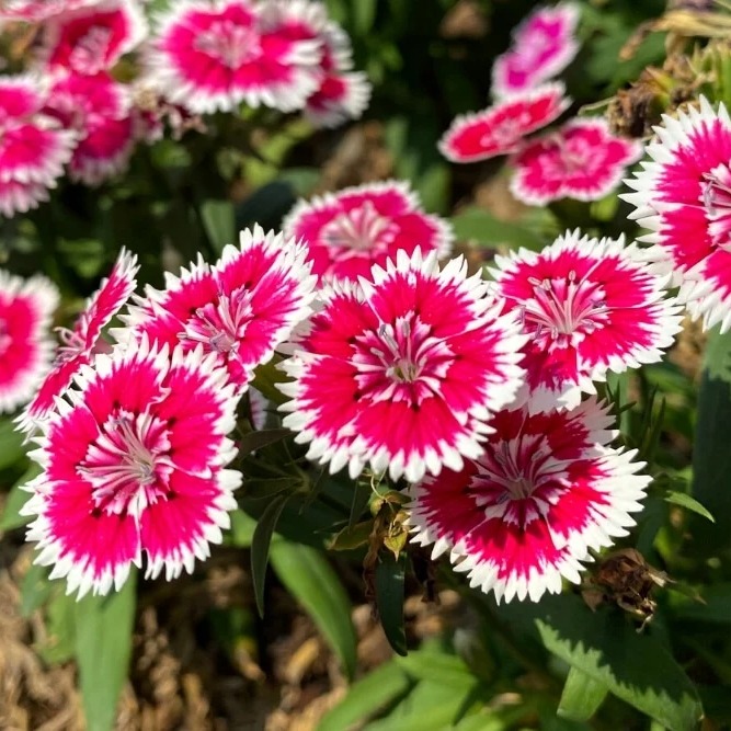 Роскошная букетная гвоздика, предназначенная для выращивания в однолетней культуре в садовых цветниках и вазонах. Сдвигая сроки посева семян на рассаду, можно добиться получения качественной срезки вплоть до наступления осени. При раннем зимнем посеве сеянцам необходима досветка. Возделывание двулетней турецкой гвоздики в виде летника позволяет избежать рисков возникновения большинства болезней культуры и гибели растений в зимний период. Гибрид формирует прямостоячие крепкие кустики высотой* около 50-60 см, которые украшены россыпью пышных соцветий диаметром более 6-8 см. Букет из гвоздик сохраняет свежесть в вазе с водой до 2 недель.