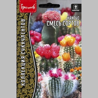 Комнатное , многолетнее растение. Смесь самых популярных, интересных и легко выращиваемых видов для домашнего выращивания. Форма стеблей, размер, форма и окраска колючек самая разнообразная. Растения являются нетребовательными комнатными культурами. Для данной смеси характерен длительный период всходов. Неприхотливы к условиям выращивания.