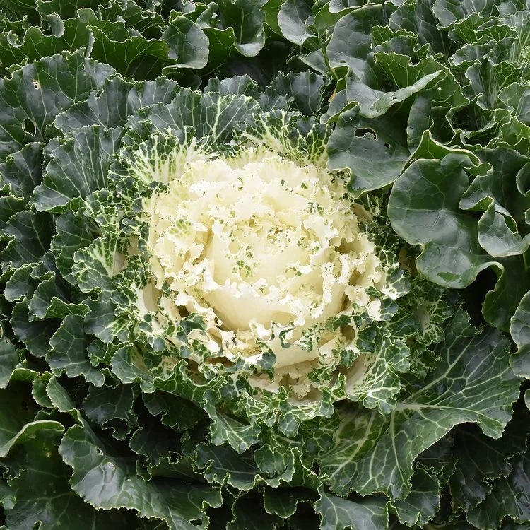 Новый гибрид с уникальными глянцевыми, без налета листьями. Формирует яркие белоснежные розетки, котрые будут величественно и торжественно смотреться в центре клумб вплоть до наступления зимних холодов.