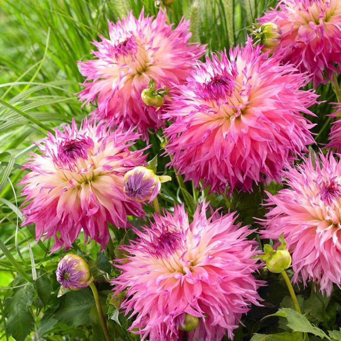 - иногда их еще называют Рассеченные – относительно новая группа георгин с крупными густо-махровыми цветками. Цветки имеют узкие лепестки (язычковые цветки), свернутые у основания и рассеченные на краях – за счет этого смотрятся, по настоящему, великолепно!
