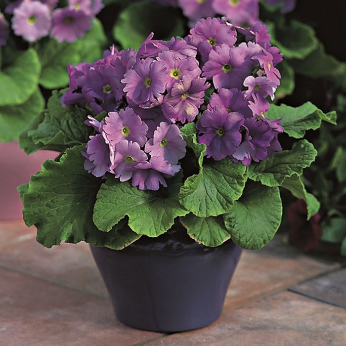 «Либре» - примула, поражающая своим великолепием и красотой в период цветения, на одном кустике может располагаться до 10 цветоносов с 25 цветками на каждом из них. «Лавандовые Зори» - примула с крупными цветками насыщенного сине-фиолетового цвета. Они, словно драгоценные камни в дорогой оправе, покрывают каждый побег и образуют шикарные соцветия-корзинки, являющиеся главным украшением вазона или кашпо.