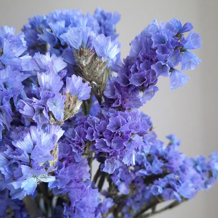Высокодекоративный летник, выращиваемый в основном для срезки в букеты и создания зимних композиций. Растение формирует до 15 прямостоячих побегов, увенчанных крупными (10-12 см) щитковидными соцветиями. Мелкие нежно-голубые цветочки, высыхая, сохраняют форму и яркость, не осыпаются. Статица отлично подходит для оформления цветников.