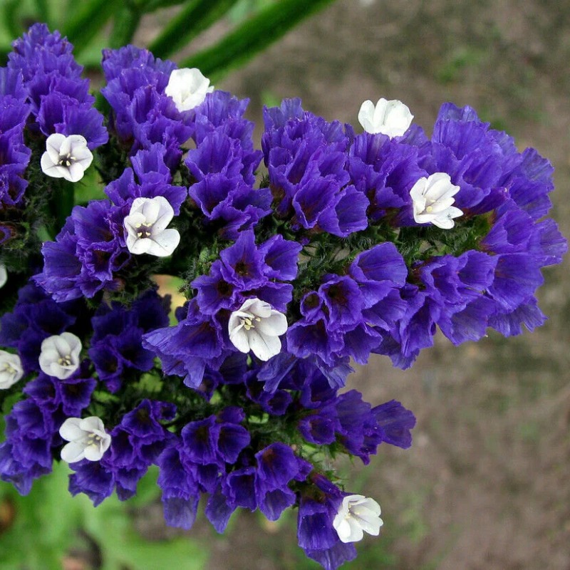 Изящное растение, формирующее до 15 прямостоячих побегов, которые венчают крупные (10-12 см) щитковидные соцветия. Цветочки крошечные, фиолетово-синие, высыхая, сохраняют форму и насыщенность цвета, не осыпаются. Статица выращивается для срезки в букеты и создания композиций из сухих цветов, отлично подходит для оформления цветников.