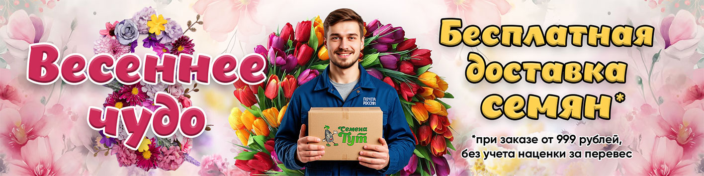 Успейте закупиться семенами перед посадкой! При заказе от 999 рублей доставка Почтой и СДЭК бесплатно* по всей России! До 31 марта!