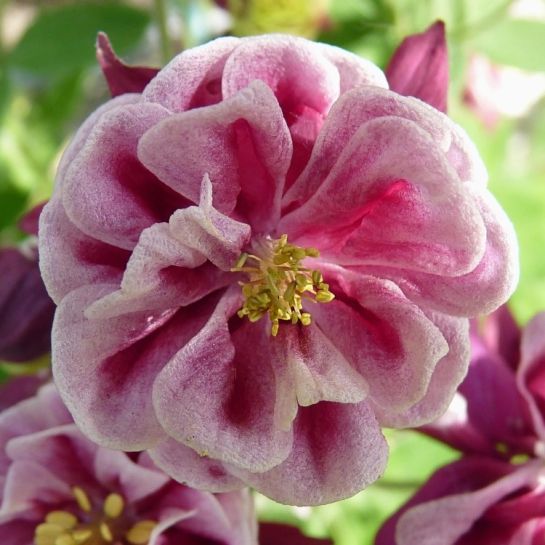 Чудесные двухцветные махровые соцветия достигают диаметра 4-5 см, они направлены вверх, что является редкостью для сортов этой культуры. Новые бутоны появляются непрерывно, поэтому каждое растение (высотой 30-40 см) выглядит очень привлекательно и напоминает пышный букет. Сорт прекрасно смотрится в центральных садовых клумбах около дома или беседки. Компактные кустики следует высаживать группами, предпочтение стоит отдать полутенистым местам. Максимальная декоративность наблюдается на второй год вегетации.