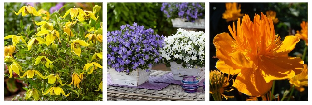 В категории "Семена цветов" - долихос (бобы гиацинтовые) Фиолетовые гирлянды; двулетние гвоздики гренадин Ванильный зефир и Клубничный зефир; клематис восточный Золотые колокола; смесь двух цветов карпатских комнатных колокольчиков Жених и Невеста; многолетняя купальница Золотая корона; великолепный лиатрис Пурпурная свеча; большая серия сочных мирабилисов ялапа - Клубника, Лимон, Лимонное шампанское и Малина; прострел Розовые сны (смесь); санвиталия распростертая Апельсинки; флокс друммонда Персиковый джем; шлемник байкальский Сапфировая россыпь.